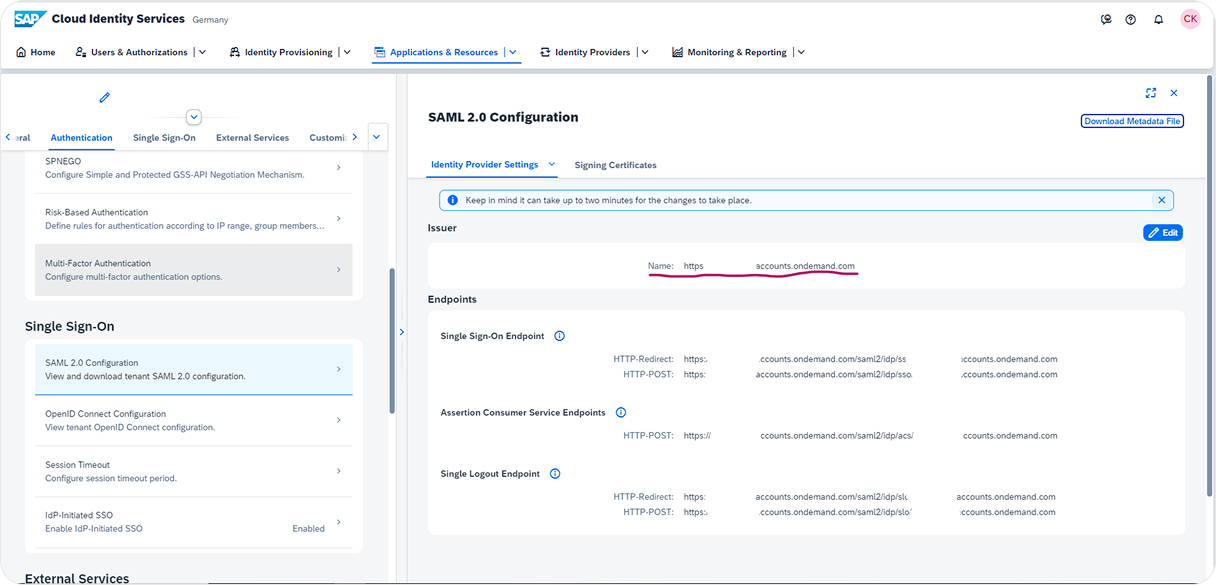 Öffnen Sie die „Tenant Settings“ in der IAS unter Applications & Resources > Tenant Settings