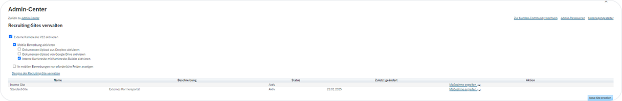 Aktivieren Sie die interne Karriereseite im Karriere Site Builder